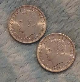 Lotto N. 2 Monete Da 5 PESETAS 1975 (Stella 76 e 77) ESPANA SPAGNA COIN.