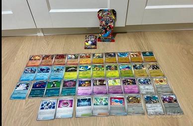 Lotto di 334 carte pokemon + mini tin da collezione porta carte + sticker + regalo calza della befana sempre pokemon!