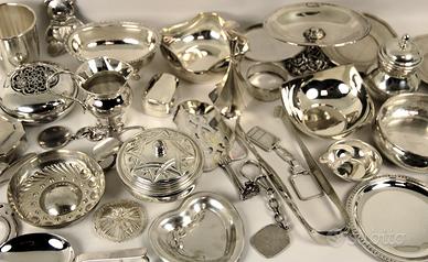 Interessante lotto di oggetti in argento massiccio 800 e 925.