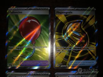 Lotto di 4 Carte Pokemon Ita Rare Holo Allenatore Fuoriserie Full Art del Set Megaevoluzione MEG Mint/Near Mint Carte da sempre in Sleeve Palloncino 166/132 Megasegnale 171/132 Giardino dei Misteri 172/132 Potenza Premium Pro 174/132 Spedizione in Sleeve, Doppio cartoncino e busta Pluriball. Altri Annunci di Carte Pokémon sul Profilo. Charizard, Blastoise, Venusaur, Mewtwo, Zapdos, Moltres, Articuno, Set, Base, Jungle, Fossil, Pokémon, Mew, Mewtwo, Gengar, Rayquaza, Entei, Suicune, Raikou, Scarlatto, Violetto, Zenit Regale, Scintille Folgoranti, Rivali Predestinati, Avventure Insieme, Paradosso Temporale, Paldea, Evoluzioni, Prismatiche, Eevee, Espeon, Umbreon, Sylveon, Flareon, Glaceon, Vaporeon, Jolteon, Bianco, Nero, Eteree, Teracristal, Ex, V, VMax, TG, gg, gallery, Art, Gold Star, Fiamme Spettrali, Megaevoluzione