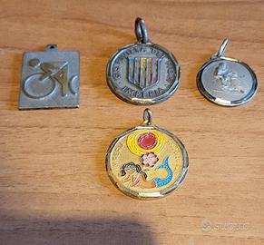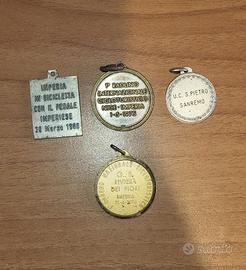 Il lotto comprende 4 medagli di ciclismo vintage di diversi anni. Le condizioni degli oggetti sono buone, con qualche segno di usura.