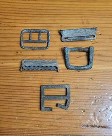 Lotto di 5 fibie vintage e alcune ww1/ww2 nello specifico quella più in basso e quella in basso a destra. Le condizioni delle fibie sono come da foto ovvero buone ma alcune con evidenti segni di usura, di ossidazione e del tempo.