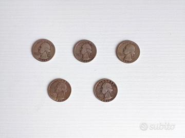 Vendo lotto di 5 monete americane da 25 centesimi d'epoca. Tutte coniate in argento 900!