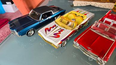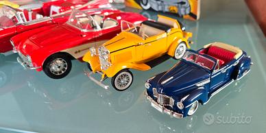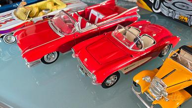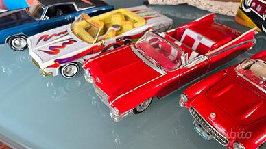 Bellissimo lotto della mia collezione privata di modellini vintage USA, con piccolo quadretto annesso. Road Master - Buick 1941 blu scala 1/32 (18€) SS7723 - Ford V8 cabriolet 1932 giallo scala 1/24 ( 22€) Burago - Chevrolet Corvette 1957 rosso scala 1/18 (35€) Maisto - Cadillac Eldorado Biarriz 1959 rosso scala 1/18,specchietto da incollare (50€) Hot Wheels - Impala del 1968 bianco scala 1/18 (89€) Racing Champion - Monte Carlo SS 454 1970 blu scala 1/18 (125€) Quadretto olio su tela "La Bodeguita del Medio" 35€. Si accettano offerte anche per tutto il lotto. Spedione in tutta Italia + 12€