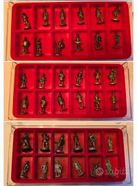 lotto di 74 soldatini in metallo Kinder 35mm- 40mm - 50mm alcune in serie e 6 scatole floccato rosso cio che si vede in foto visti e piaciuti