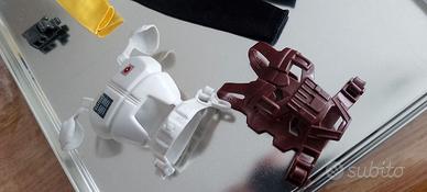 Lotto di accessori per action figure Big Jim e Hero Force. - Pantaloni gialli e neri. - Zaino marrone. - Zaino bianco. - Piccola ciotola verde. - Pezzo grigio. Accessori x big jim 2 tute 2 pettorine 1 telecamera 1 casco piccola macchietta dietro la muta da sub