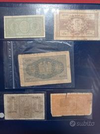 lotto di banconotedelRegno d'Italia, composto da tagli da una, due e cinque lire. Queste banconote sono generalmente emesse durante il periodo della Luogotenenza (1944) o il periodo Impero (1939-1940) sotto Vittorio Emanuele III.