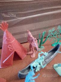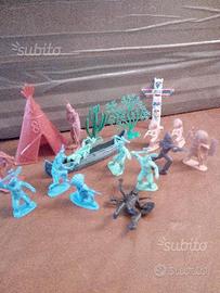 lotto di indiani vari piu accessori come da foto 13 indiani 1 capanna 1 totem 1 albero 1 cactus 1 canoa spedisco con pacco tracciabile 12 euro
