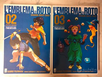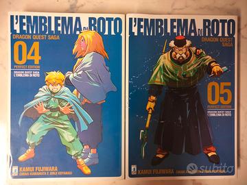 In vendita un lotto di 5 volumi della splendida Perfect Edition de L'Emblema di Roto, uno dei capitoli più epici e amati legati alla saga di Dragon Quest. Questa edizione è caratterizzata da un formato più grande, pagine a colori e un restauro grafico che rende onore al tratto del maestro Kamui Fujiwara.