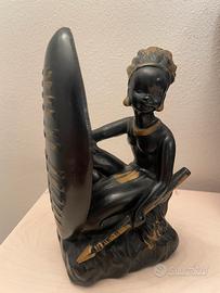 Scultura Silhouette Donna africana intagliata a mano in legno