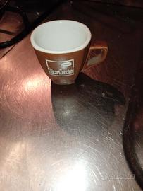 tazzina da caffè espresso in ceramica, spesso ricercata dagli appassionati come pezzo di una "vintage collection.bicchierino in vetro per caffè espresso del marchio Essse Caffè.