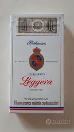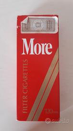 Lotto di tre pacchetti di sigarette da collezione vintage ROTHMANS LUXORY LENGTH, MORE FILTER CIGARETTES e WEBSTAR PATENT ben conservati.