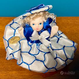 2) Bambolina con vestito di velluto blu