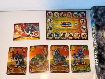 Vendo splendido e raro lotto da collezione dedicato ai Dinofroz Combat Predatorz, perfetto per i nostalgici, per chi vuole completare la propria collezione o provare il famoso gioco di strategia in versione integrale! Il lotto è eccezionalmente ricco e, cosa fondamentale, include il gioco BATTLE GAME in versione totalmente COMPLETA. Nello specifico, il lotto comprende: 🦖 7 Personaggi Dinofroz in 3D: in condizioni quasi perfette, con dettagli ben definiti. Include i 7 modelli rari (dinosauri corazzati, versioni "ossa", il ragno). 📜 CONTENUTO DEL GIOCO (completo e intatto): All'interno della scatola troverete il libretto di regolamento originale completo in italiano, e soprattutto tutti i fogli di segnalini e pedine fustellati originali (come potete vedere chiaramente nella foto ravvicinata del contenuto). Sono presenti decine di pedine personaggio e tutti i segnalini di gioco (artigli, uova), molti ancora perfettamente attaccati ai fogli. Non manca nulla per giocare! 🃏 5 Carte da gioco: 4 carte grandi (Temptelephas, Megaglyptodon, Petacharonosaurus, Esagigantosaurus) e 1 carta piccola (Temptelephas). 🗺️ Extra: Il mini-poster checklist pieghevole e la bustina vuota originale da edicola. Condizioni: L'intero lotto è in condizioni eccellenti. I personaggi sono stati esposti ma sono tenuti benissimo. Il gioco BATTLE GAME all'interno è praticamente nuovo e intatto, con i segnalini e il regolamento immacolati. Le carte sono state consultate ma sono in ottime condizioni. Vi prego di esaminare attentamente tutte le foto (comprese le foto del contenuto interno) per valutare l'effettiva integrità di ogni pezzo. Le foto sono parte integrante della descrizione. Venduto come lotto unico, un'opportunità unica per avere tutto il necessario in un colpo solo. Spedizione ultra-rapida e imballaggio a prova di bomba! Per qualsiasi domanda, scrivetemi pure! 😊