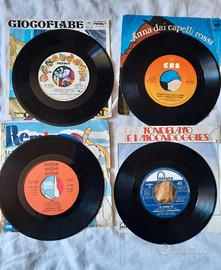 Lotto di n. 10 Dischi 45 giri da bambini anni 70/80, ascoltati e usati, non nuovi; alcune custodie sono rotte e/o colorate.