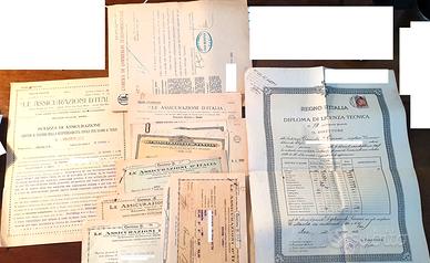 Per descrizione guardare in galleria immagini. Grossomodo, carte di identità regno, prime tessere fiera del levante inaugurazione Mussolini, tessere introvabili tra cui un paio relative all'inaugurazione della fiera stessa. Tessere combattenti fascio, certificati assicurativi regno e fascio ed altro.