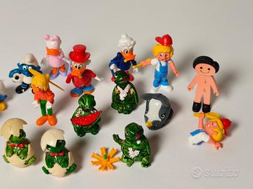 Grande lotto di personaggi Kinder Sorpresa vintage, anni ’80–’90, in plastica dura colorata.