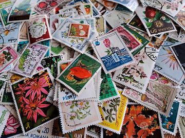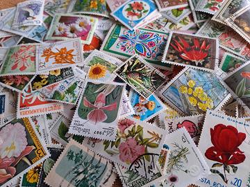 Lotto francobolli tematica FIORI, commemorativi usati, lavati senza frammenti. Numero 300 pezzi.