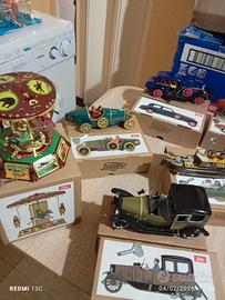vendo in lotto 10 meravigliosi giocattoli di latta a carica nuovi mai giocati con scatola e chiavetta solo la macchina blù non tiene la chiavetta, sono da collezione.