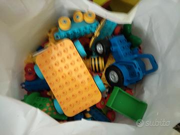 Di mattoncini Duplo e Legoland con personaggi/animali e piattaforme di vari set.