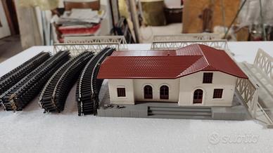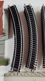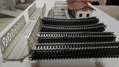 Lotto Lima in scala H0 così composto: Stazione con segnale acustico funzionante in buone condizioni senza scatola. 3 ponti Lima in buone condizioni senza rotture 13 binari curvi cod.3030 36° completi di scarpette alcuni con piccole rotture ma che non compromettono il buon funzionamento 12 binari dritti cod.3020 completi di scarpette e in buone condizioni