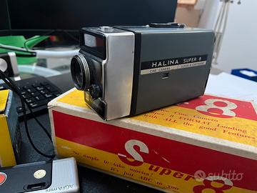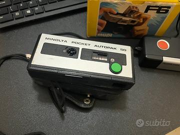 N. 3 macchine fotografiche: Agfa mini, Minolta pocket (con custodia originale), Mupi F6 (con scatola originale) e N. 1 cinepresa Halina super8 (con scatola originale ma un po’ deteriorata). Vendibili in lotto o singolarmente. Accetto offerte (non ridicole). Spedizione disponibile