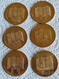 n.6 medaglie commemorative diverse in ottone dorato emesse da Rizzoli hanno un diametro di mm.28 e un peso di 8 grammi circa. no spedizione