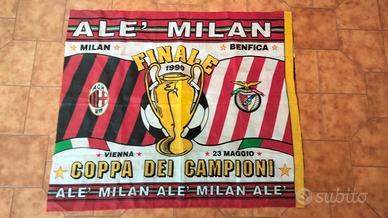 - stendardo per la finale di Coppa Campioni del 1990 fra Milan e Benfica in tessuto sintetico. Ritagliata a mano, quindi può avere bordi non "retti". Misure circa 84*98,