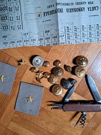 lotto militaria, bottoni spalline, tessera annonar