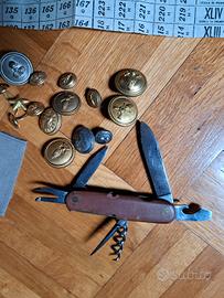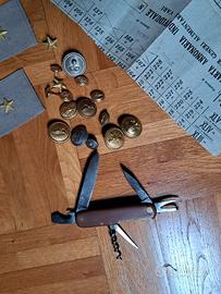 lotto come da foto bottoni regio esercito e nkn , spalline regio es, coltello dotazione, e tessera scritta dietro