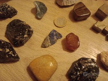 lotto di minerali, agata, ossidiana fiocco di neve, calcite, pirite, lapislazzuli ecc