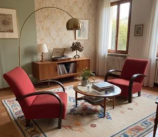 1 tavolino Mier da fumo 1 tavolo allungabile 4 sedie Design 3 sedie bauhaus 1 lampada 2 poltroncine anni 60 2 poltroncine anni 70 2 poltrone design Halabala 1 Sedia da ufficio kovona
