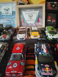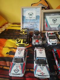 I quadri nello sfondo sono in vendita e sono stati realizzati con modellini in scala 1:8 rappresentativi la lancia 037 martini, la lancia delta martini sempre da rally e la mitica Ferrari 330 p4 di leMans.