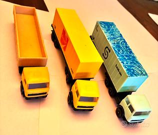 Lotto composto da tre autoarticolati Lima anni 70 . Rari . E quattro carri pianali fleischmann con container . Come da foto che fanno parte integrante della descrizione