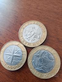 lotto di tre monete da 1000 lire in ottime condizioni