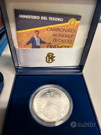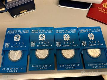 Vendo Lotto monete commemorative argento: Monete in Astuccio: • 10.000 Lire 1998 – Argento – Campionato Mondiale di Calcio "Francia '98" (IPZS). • 5.000 Lire 1997 – Argento – III Centenario della nascita di Canaletto (IPZS). • 10 Euro 2003 – Argento – Presidenza Italiana del Consiglio dell'Unione Europea (IPZS). Monete in Confezione Speciale / Folder: • 500 Lire 1978 – Argento – Città del Vaticano, Sede Vacante (Astuccio rosso). • 500 Lire 1990 – Argento – V Centenario Scoperta dell'America, 2ª emissione (Folder illustrato). Monete in Astuccio Rigido Blu (Sezione Zecca) • 500 Lire 1974 – Argento – Centenario di Guglielmo Marconi (2 esemplari in bustina sigillata). • 500 Lire 1964 – Argento – IV Centenario della nascita di Galileo Galilei (3 esemplari). • 500 Lire 1982 – Argento – Centenario della morte di Giuseppe Garibaldi (1 esemplare).