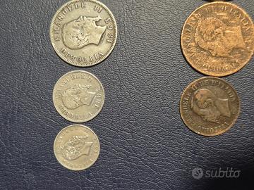 lotto set monete di Emanuele ii dal 2 centesimi fino al 5 lire. condizioni come da foto. prezzo leggermente trattabile