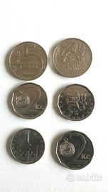 Lotto Di 6 Monete Straniere Pre Euro Da Collezione Numismatica della Cecoslovacchia Cinque-Due-Una Koruna moneta (1966) coniato nella Repubblica Socialista Cecoslovacchia