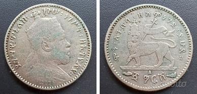 lotto così composto: - 1 gersh 1903 (Ag 0.835) (imp. Menelik II 1889-1930) - 1 matona 1931 (imp. Haile Selassie 1930-1931) - 50 matona 1931 (imp. Haile Selassie 1930-1931) - 1 santeem 1944 (imp. Haile Selassie 1944-1976) - 5 santeem 1944 (imp. Haile Selassie 1944-1976) prezzo trattabile
