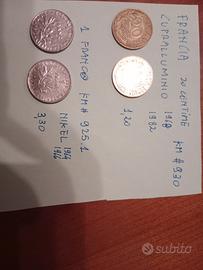 Lotto monete francesi. - Moneta da 20 centesimi,