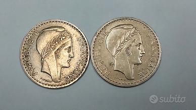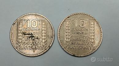 lotto di 5 monete francia di valore nominale e anno vari 50 centimes 1898 1pz in condizioni non buone 2 francs 1978/81 10 francs 1947/49