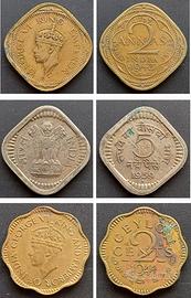 lotto così composto: India britannica (Re Giorgio VI 1938-1947): - 2 anna 1943. Repubblica indiana (1957-oggi): - 2 naye paise 1957 - 5 naye paise 1959 - 10 naye paise 1957 - 25 naye paise 1961 Ceylon, attuale Sri Lanka (Re Giorgio VI 1937-1952): - 2 cents 1944 - 5 cents 1944 prezzo trattabile