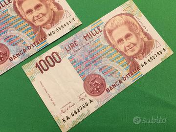 Lotto di nr. 2 Banconote da 1000 Lire Maria Montessori - 1990 Condizioni SPLENDIDE