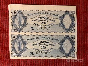 1 Banconota 100000 lire “Caravaggio” + 73 monete in metallo (vedi fotografia) + Cedole “Debito pubblico dello Stato Italiano “ come da fotografia, ovvero: 8 cedole da lire 125 (1966 - 1972 - 1973) - 15 cedole da lire 250 (1966 - 1972 - 1973) - 5 cedole da lire 1250 (1966 - 1972 - 1973).