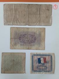 lotto di 3 banconote lira occupazione e 1 banconota francia