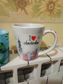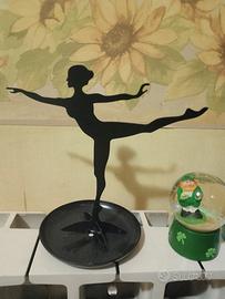 Silhouette ballerina metallo nero , sfera di vetro con lepechaun e trifoglio, porta candele tropical paradise con decorazioni tropicali, tazza da collezione con decorazioni Amsterdam