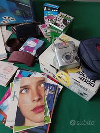 Lotto comprende macchina foto digitale, agendina, libretti vari, vecchi oggetti per scrittura, convertitore foto , figurine, cartoline, quadretti su rame. Tutto usato ma in buone condizioni.