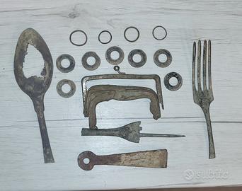 Le condizioni del lotto sono come da foto, ovvero tutti gli oggetti presentano segni di usura, parti rotte o mancanti, ossidazione del metallo e segni generici del tempo.