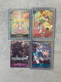 Buongiorno a tutti 😎 Vendo il seguente lottino: Ulti op05 2€ Mansherry op05 5€ Otama op01 6€ Trafalgar op09 2.5€ Reiju psa10 100€ nel caso vogliate acquistare solo qualche carta scrivetemi e vi creo l annuncio.