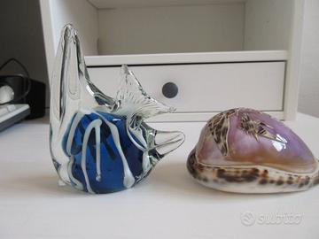 Pesce in vetro "Vetro artistico" e conchiglia.